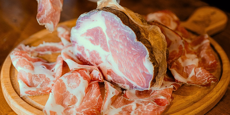 Capocollo di Martina Franca, carpaccio di manzo affumicato, filetto lardellato di Martina Franca, Soppressata dolce, soppressata piccante, crudo di parma, finocchiona, selezione di formaggi pugliesi di varia stagionatura accompagnato da marmellate selezionate